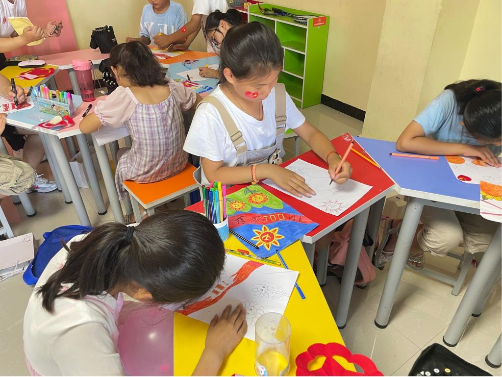 此次实践活动将党史宣讲和艺术文化进行融合,为留守儿童组织了一系列丰富多样的活动,包括党史主题画展、剪纸和绘画课程、趣味互动活动等。党史主题画展让孩子们感受到红色精神,传承红色基因,一颗颗爱国种子在他们心中萌芽。剪纸课程让孩子们感受到传统文化艺术的魅力,感悟中国传统文化的奥妙。绘画课程让孩子们发挥想象,天马行空笔不停,童心向党,畅想未来绘梦图。内容丰富多彩、趣味盎然的体育活动,让孩子们在体验快乐运动的同时,提升身体素质。