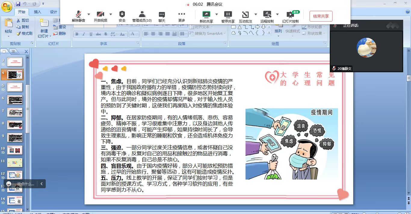 此次心理健康月教育系列活动将心理健康教育同专业学习与校园文化活动相结合,内容包括心理宣传教育讲座、主题班会、知识竞赛、秋日爱心茶站、减压铺、心理故事征文、文创设计、暖围巾创作等多种形式,通过多角度、体验性、创新性的心理健康教育活动引导学生充分认识心理健康的重要意义,增强心理健康自护技能,了解寻求心理帮助的途径。活动期间,学院还多角度全方位有序开展人文关怀和心理疏导工作,缓解学生疫情防控期间的心理压力,满足学生多层次心理援助需要。