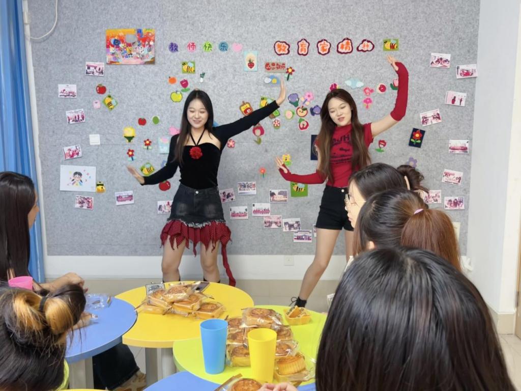 活动中,同学们在一站式社区一起赏月品茗,通过明信片或手写书信的形式,表达了自己对亲人和朋友的美好祝愿。随后,参与活动的同学们在莲花餐厅进行了“慧眼识灯语,灯谜竞猜”活动,同学们积极参与,各显其才,纷纷抢摘谜语,投入到谜底竞猜之中,增添了浓浓的中秋佳节气氛。在同学们欣赏中秋月景的同时,部分同学带来了精彩的歌舞表演,这不仅是一场视觉与听觉的享受,更是文化的传承。