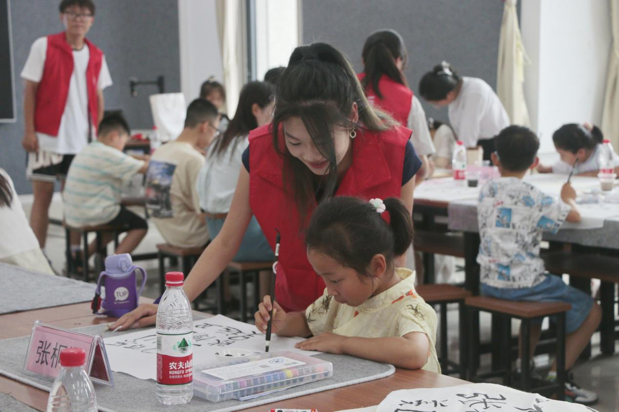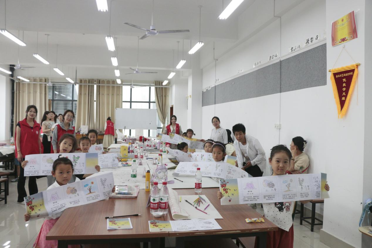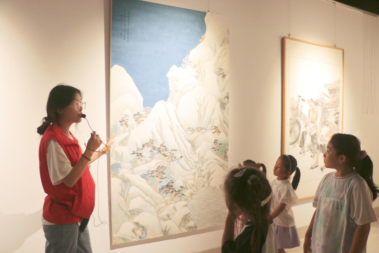 本次活动从参观博雅画廊、美术馆开始,党员讲解团为小朋友们介绍了展厅概况、展览作品的艺术风格和绘画技艺,小朋友们与讲解员积极互动,感受丰富多彩的艺术魅力。志愿者们结合“中国历代绘画大系”开展了中国传统绘画宣讲,为小朋友们宣讲中国优秀传统绘画艺术和知识,同时带来了国画课堂、卡通填色画体验、书法课堂、纸浆画制作、非遗漆扇制作等趣味十足的美育小课堂,一件件特色鲜明的作品在小朋友们手中诞生。教室里充满了欢声笑语,孩子们一边认真创作,一边与志愿者们分享创作灵感。