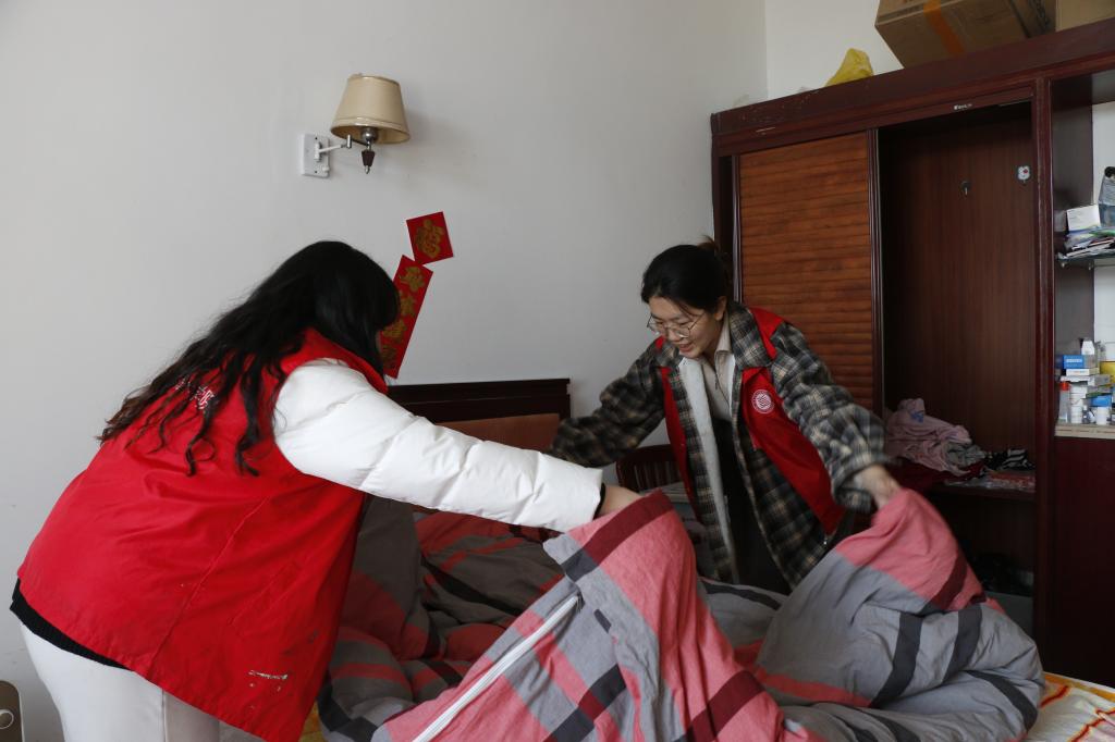 志愿者们为五保孤寡老人们带去了水果和部分生活用品等。在敬老院工作人员的引领下,他们走进敬老院的食堂、活动中心、寝室等处,为老人们打扫院卫生、整理床铺。随后开展了消防安全知识宣讲,普及消防安全知识,筑牢安全意识。志愿者们一边忙着手里的工作一边与老人聊家常、问冷暖,为老人剪指甲、梳发,以实际行动使老人感受到家人般的温暖和社会大家庭的关爱。最后,志愿者们为老人表演了精心准备的文艺节目,与老人们一起唱他们最喜欢的《学习雷锋好榜样》《没有共产党就没有新中国》《团结就是力量》等红歌,老人们跟着一起哼唱、拍手,幸福的笑容在彼此的脸上洋溢。