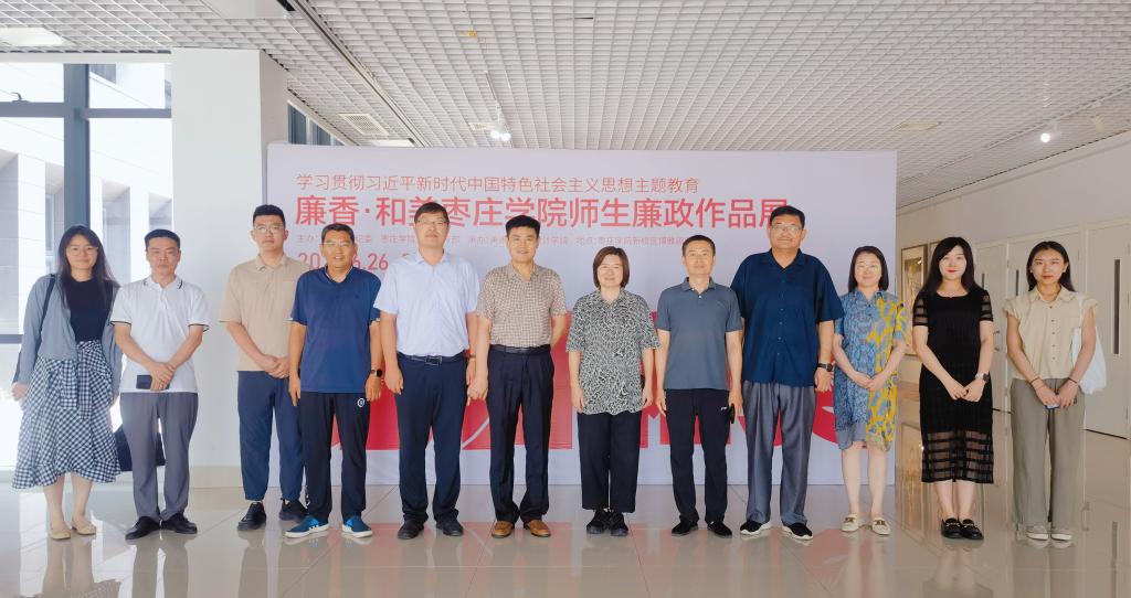 座谈交流结束后,杨晓青一行参观了学院正在举行的“廉香·和美”师生廉政作品展和“同韵雅兰”书画镶嵌作品展。
