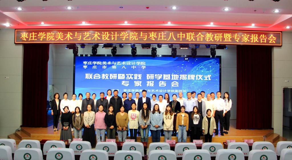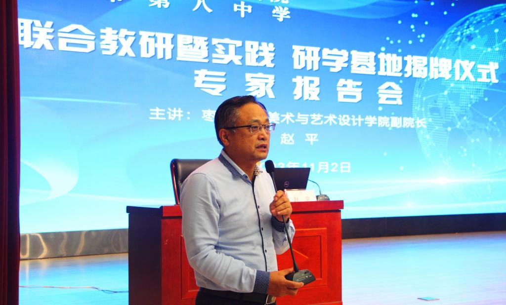 揭牌仪式后,与会领导、永利集团yl6809师生代表、八中师生代表300余人参加联合教研暨专家报告会。我院副院长赵平做《中西美学比较》的专题报告。枣庄八中东校常务副校长李雪玉做报告总结。