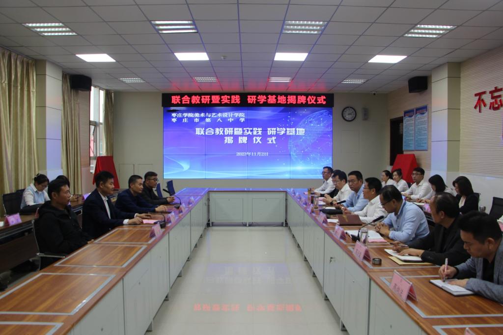 11月2日下午,yl6809永利、枣庄八中联合教研暨实践、研学基地揭牌活动在枣庄八中东校隆重举行。枣庄市教科院高中教研室主任杨立新、市教科院美术教研员杨小勇,薛城区教体局教研室主任郝东蕴,枣庄八中校长戚峰、八中东校常务副校长李雪玉、八中南校副校长高庆堂、八中东校副校长高尚法,我院党总支书记王剑、副院长赵平及部分教师学生代表参加研讨活动。