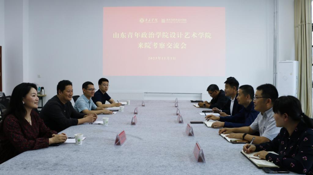2023年11月1日下午,山东青年政治学院设计艺术学院党委书记赵健、院长张博等一行4人来访我院,院党总支书记王剑、副院长赵平等学院班子成员出席接待交流活动。