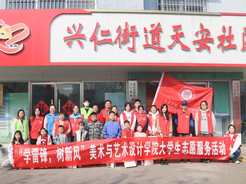 在兴仁街道天安社区,首先进行了大学生社会实践基地揭牌仪式。随后,志愿者们开展了包含公益美术课堂、创文创卫为主要内容的便民服务活动。其中公益美术课堂主要针对社区四点半课堂留守儿童开展,以“学雷锋,树新风”为主题,包含了书法、山水书签画、彩泥、雷锋故事剪纸、素描基础教学等特色活动,深受孩子们的喜爱。在沙沟镇敬老院,志愿者们给老人带去部分生活用品和自己创作的书画作品,帮助老人整理内务,并通过拉家常及文艺表演为老人提供亲情陪伴。志愿活动后,大家还来到铁道游击队纪念馆接受红色教育,学习雷锋精神,传承红色基因。