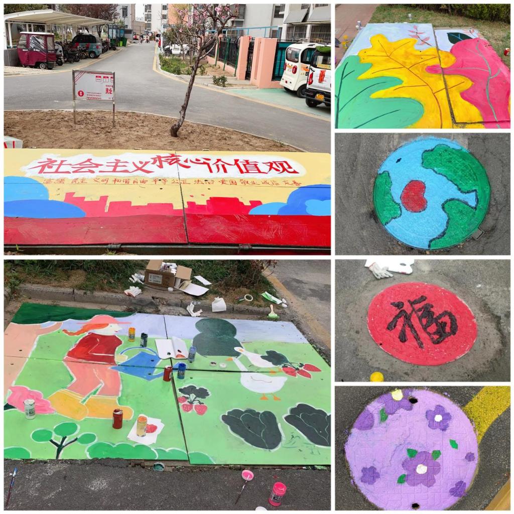 志愿服务活动以“井盖绘画”进社区的形式开展,走进兴安社区、天安社区、光明社区,围绕社会主体核心价值观、创建全国文明城市、保护环境等主题,由学生们自主设计作品内容,老师指导完成创作。绘画志愿者们通过构图、调色、上色等步骤有条不紊地进行绘画,共绘井盖涂鸦300余幅。色彩靓丽、风趣活泼的井盖涂鸦引来附近居民的驻足围观、拍照留念和频频点赞。