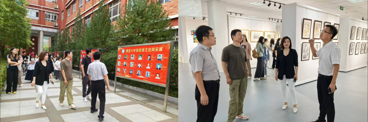 师生首先参观了枣庄八中东校名师风采展、学校美术馆,通过参观增强了学生的职业认同感,使学生感受到了榜样的力量,同时也感受到了枣庄八中东校美育教学的丰硕成果。