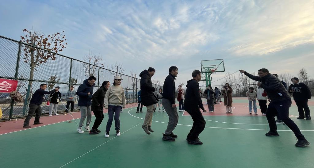 本次趣味运动会以“美院同心,健康同行,趣享快乐”为主题,共设置了花样接力、齐心协力、摸石头过河、环环相扣、同心鼓和集体跳绳等6个项目,项目设计既有趣味性又突出集体参与性,比赛过程中大家积极踊跃,使出浑身解数,奋勇争先,气氛和谐,用行动诠释“我运动、我快乐”的理念。虽已入冬,但老师们丝毫没有感受到寒意,整个活动过程精彩不断,不时爆发出欢声笑语,不少学生也纷纷跑来为老师们加油助威,现场热闹非凡,呈现出一派欢乐祥和的景象。