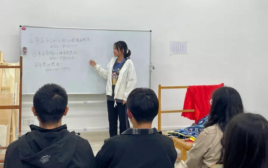 我院始终坚持心理健康素养提高和个体心理疏导相结合的方式,采取知识宣讲、热线咨询等多种形式来进行,为美院学子们普及心理健康知识。心理健康知识宣讲结束后,心理咨询部成员向大家介绍了枣庄市24小时心理援助的热线、永利集团yl6809心理服务热线、希望24热线。有心理咨询需要的美院学子可通过心理健康热线进行一对一的电话咨询和心理疏导,及时疏解学习和生活压力,提升心理健康水平。