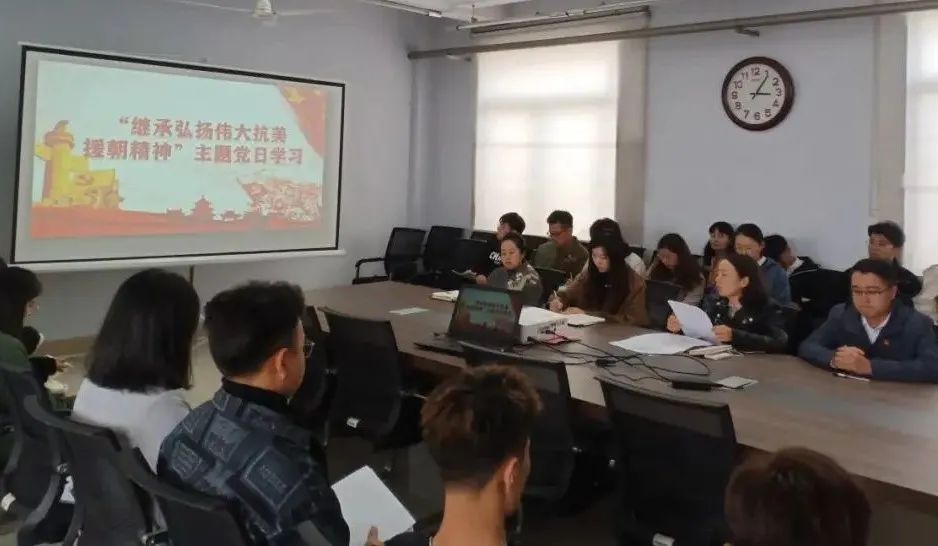 10月28日下午,yl6809永利学生支部于美术楼党员活动室开展“弘扬伟大抗美援朝精神”主题党日学习。我院党总支副书记、学生支部书记邢哲主持此次学习。