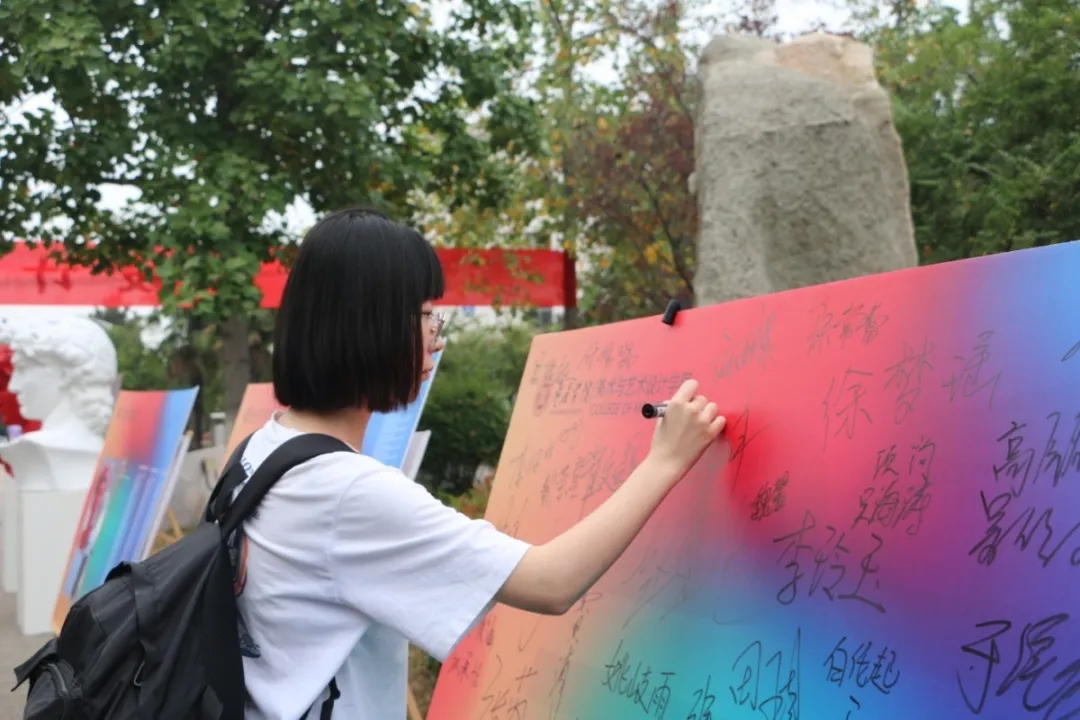 为了更好的展现美院专业特色,今年迎新场地布置了海报、大卫雕像等作为指引辅助迎接新生到来。迎新志愿者热情服务,帮助新生填写入学申请表,搬运生活物品。新生辅导员、助导收取相关材料,分发校园卡、讲述相关注意事项、介绍本班专业特色。迎新工作处专设“绿色通道”为办理生源地贷款的同学提供一对一服务。美院还组织新生参与大卫打卡、签名墙活动,迎新方式创意十足。此次迎新工作,不仅促进了美院学子之间的交流,更让新生及其家长充分感受到美院同学们的热情以及人文情怀。