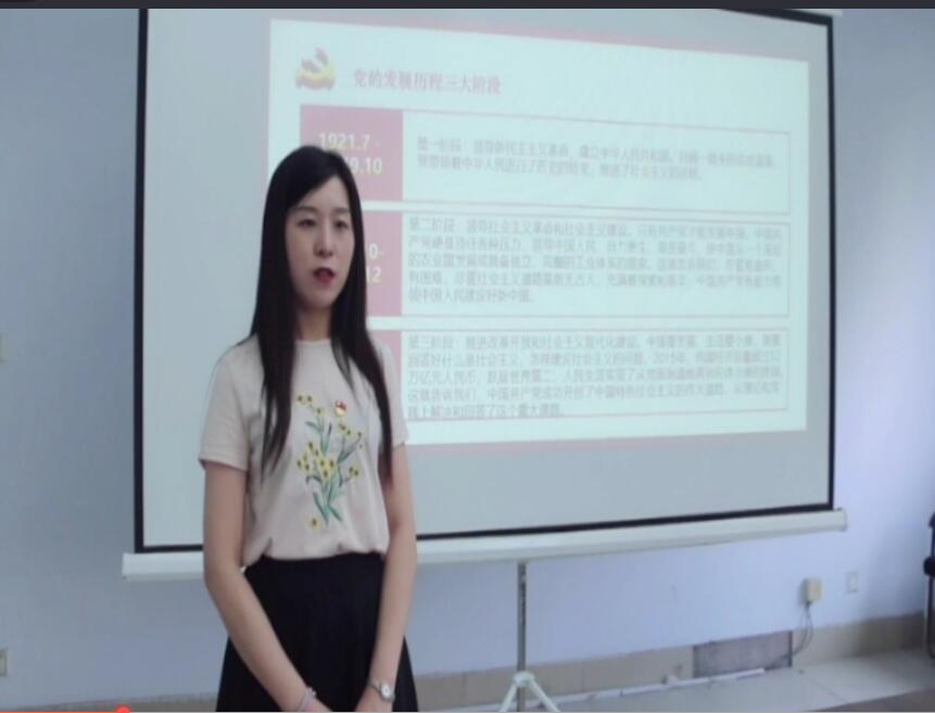 7月8日,yl6809永利学生党支部委员高翠萍于美术楼党员活动室为学生党支部全体党员讲党课,主题为《“忆党史,强党性,建初心”--纪念建党99周年专题党课》。