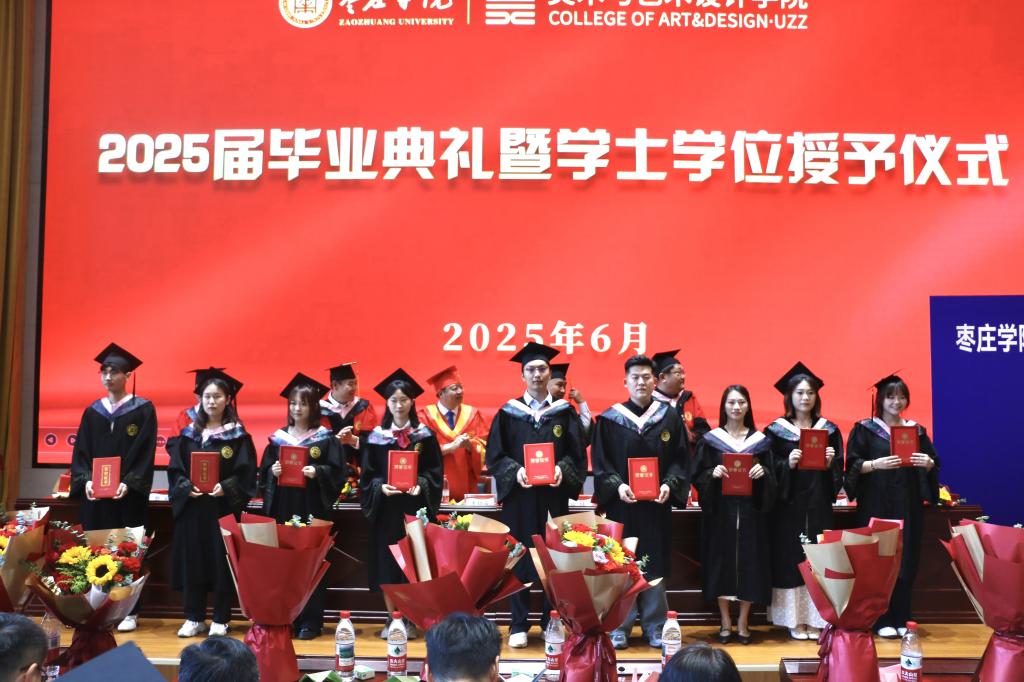 上午10时,毕业典礼在庄严的国歌中拉开帷幕。副院长厉相帅宣读了永利集团yl6809学位评定委员会《关于授予董子怡等本科毕业生学士学位的决定》,校党委委员、副校长李目海依次为本科毕业生逐一拨穗正冠,颁授学位证书并合影留念。随后,领导们为10位校友联络员颁发聘书,为6位学生代表佩戴院徽,并向留校作品学生代表颁发留校作品收藏证书,用证书定格艺术成果的永恒价值。教师代表、书法教研室主任杨雯,毕业生代表冯晨阳,在校生代表杜依芮依次发言,各班毕业生代表为教师献花,对老师们的悉心教导和辛勤付出表示衷心感谢。最后,学院党委书记王剑发表致辞,向即将踏上人生新征程的全体2025届毕业生表示衷心祝贺并送上美好祝愿。