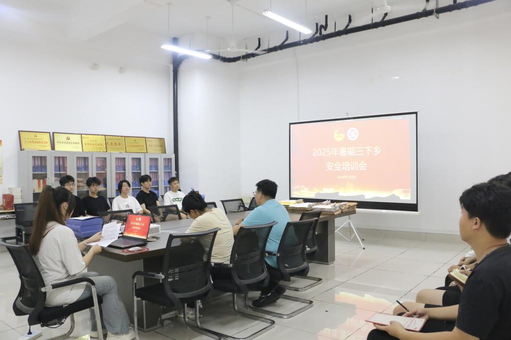 培训会围绕出行、住宿、饮食、财产安全及应急处理等多个方面展开讲解老师通过真实案例分析阐述了实践过程中可能遇到的安全隐患及应对措施,特别强调高温天气防暑人身安全注意事项与处理流程。安全培训后,老师向全体参与“三下乡”活动的同学发出倡议,号召大家以饱满的热情投身社会实践,将专业知识与社会需求结合,在服务社会中增长才干。随后,学生代表进行发言,鼓励同学们互帮互助,严格遵守纪律要求,听从带队老师指挥,积极参与各项实践活动。培训会尾声,全体同学签署了安全承诺书明确在实践过程中的安全责任和义务。同学们纷纷表示,将严格遵守安全承诺,以严谨的态度和高度的责任感投入到“三下乡”社会实践活动中。
