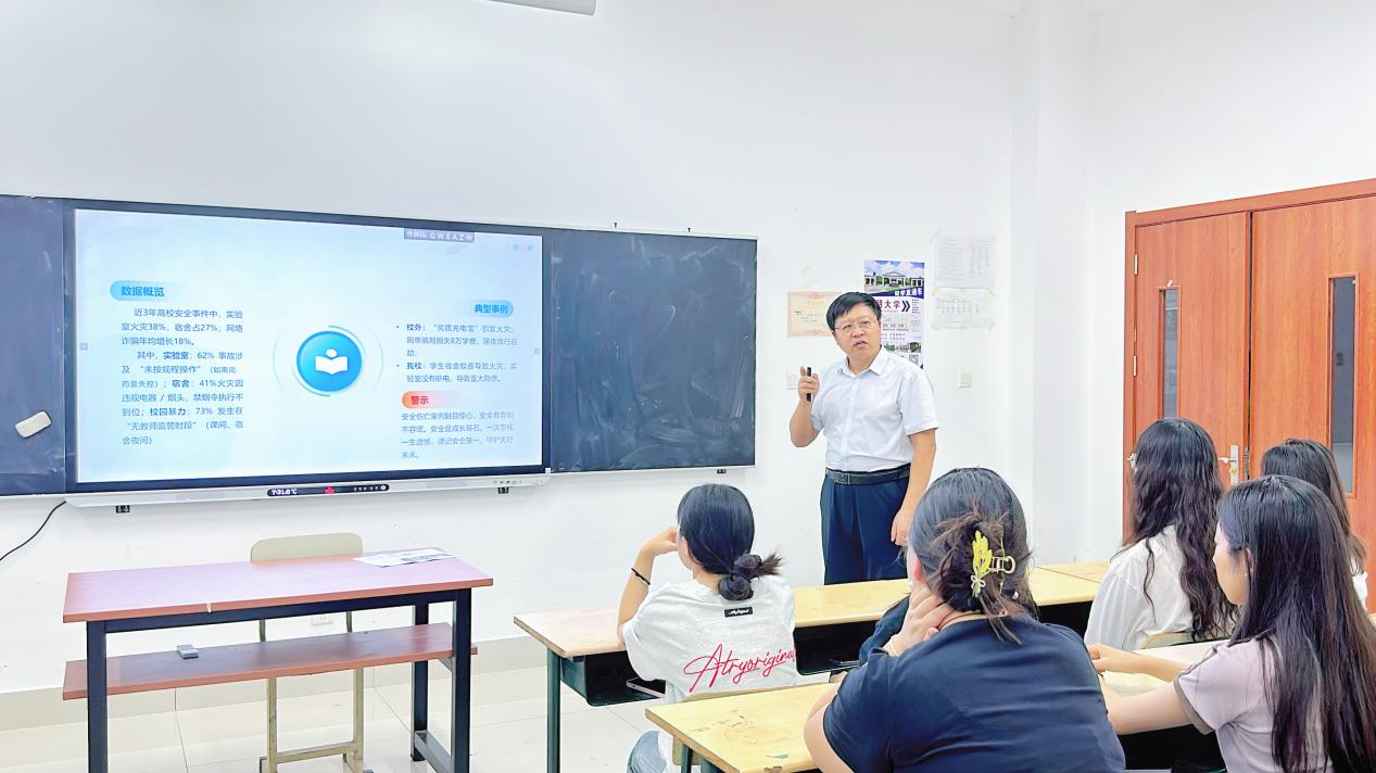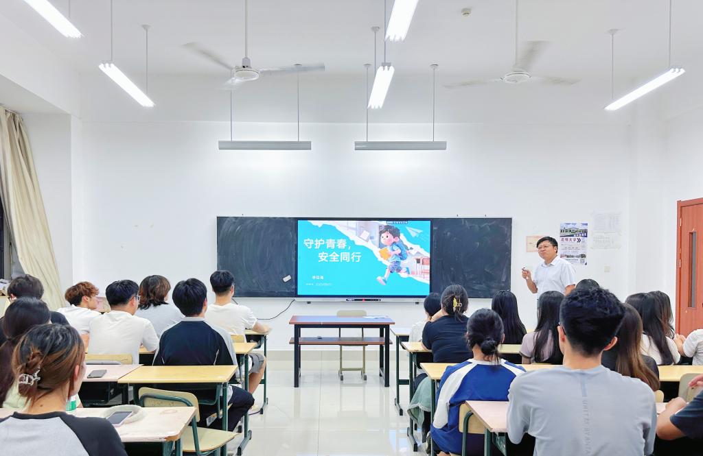 在新学期开学之际,为进一步强化全体师生的安全意识,提升安全防范能力,营造安全和谐的校园环境,9月1日下午,校党委委员、副校长李目海到yl6809永利联系班级,为学生讲授了题为“守护青春 安全同行”的秋季学期“开学第一课”,学院党政领导、全体辅导员及2023级环境设计本科1班全体同学到场聆听。