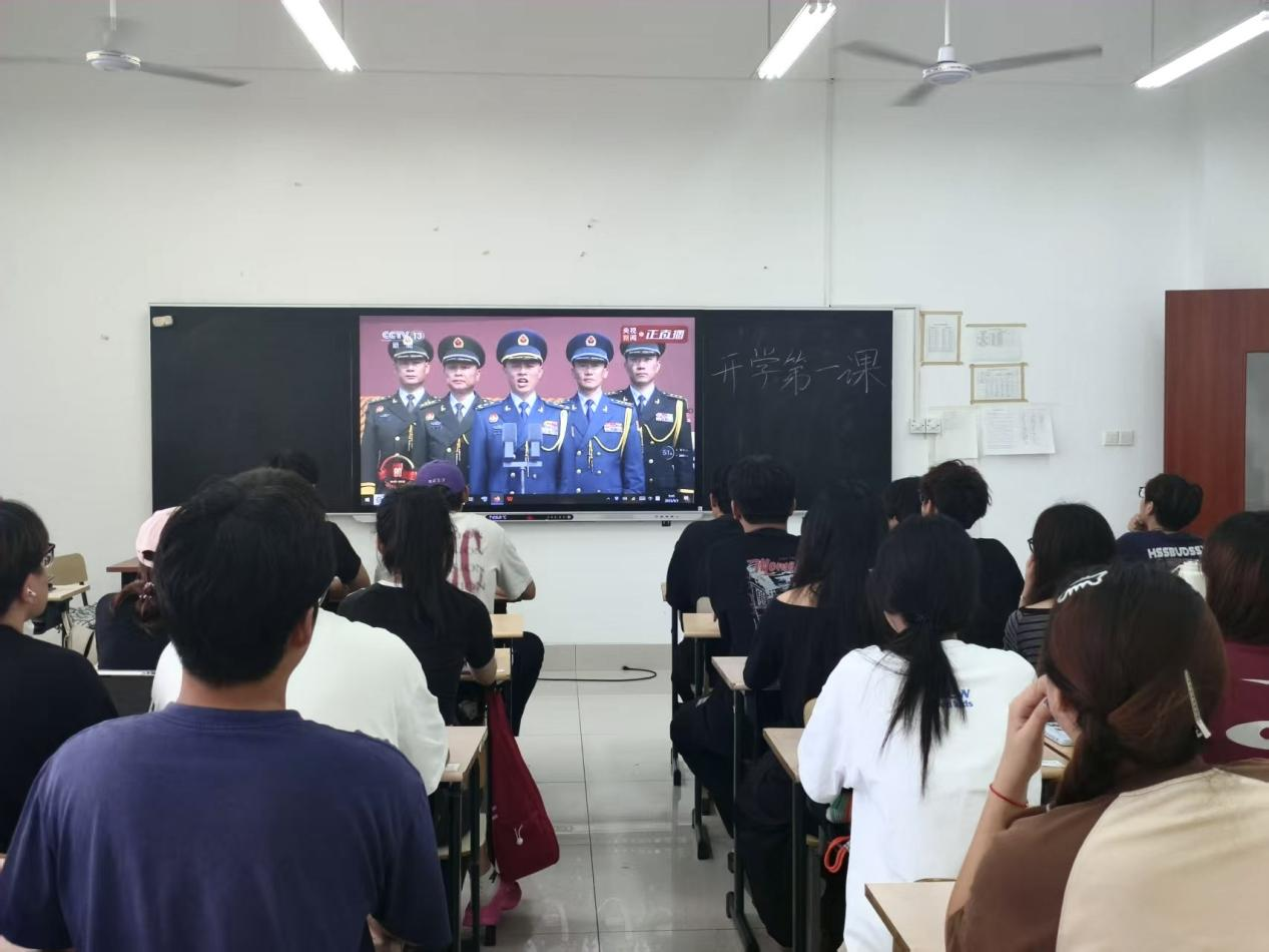 伴随雄壮的《义勇军进行曲》大会正式开始。全体同学认真收听收看纪念大会,认真聆听习近平总书记重要讲话。阅兵中整齐划一的方阵、先进强大的武器装备、昂扬奋进的受阅部队,让同学们感到热血沸腾。同学们结合大会的各项内容,深刻地认识到国防安全的重要性。观礼结束后,同学们迅速展开热议,聚焦大会内容,抒发自己对祖国的热爱,对军人的崇敬以及对那段抗战历史的缅怀。不少同学还提到,要将个人成长与国家命运紧密结合,为祖国建设积极贡献青春力量。
