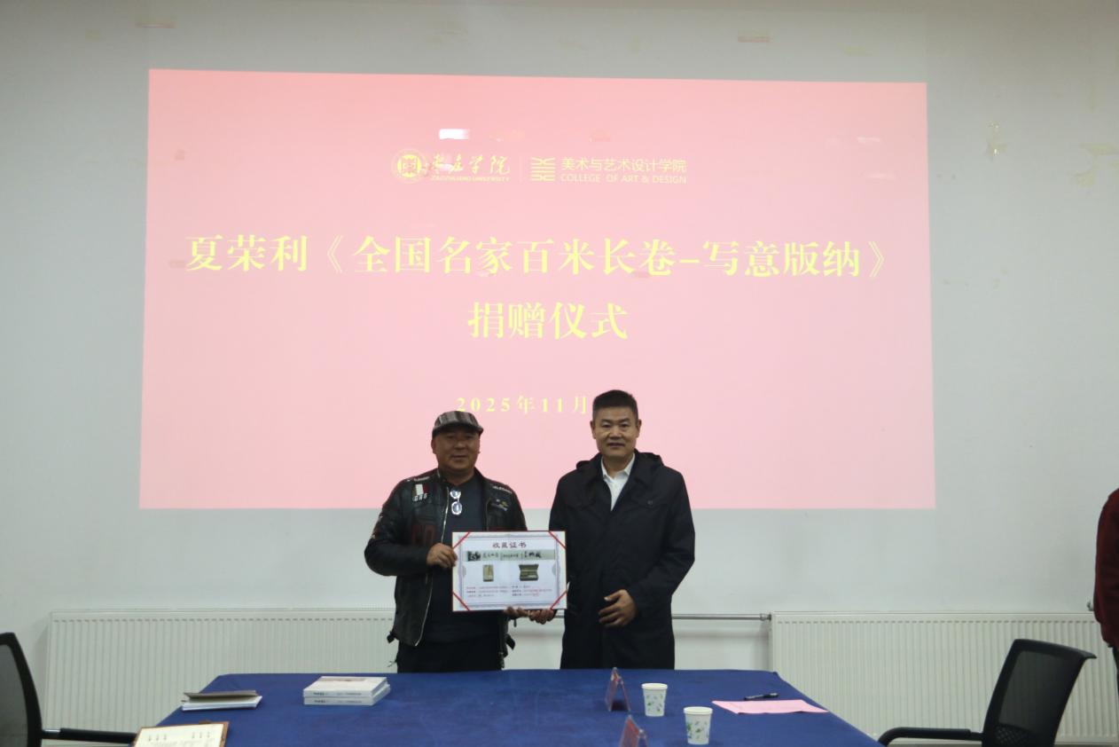 11月3日,yl6809永利在博雅楼A213举行夏荣利《全国名家百米长卷—写意版纳》(复制件)捐赠仪式