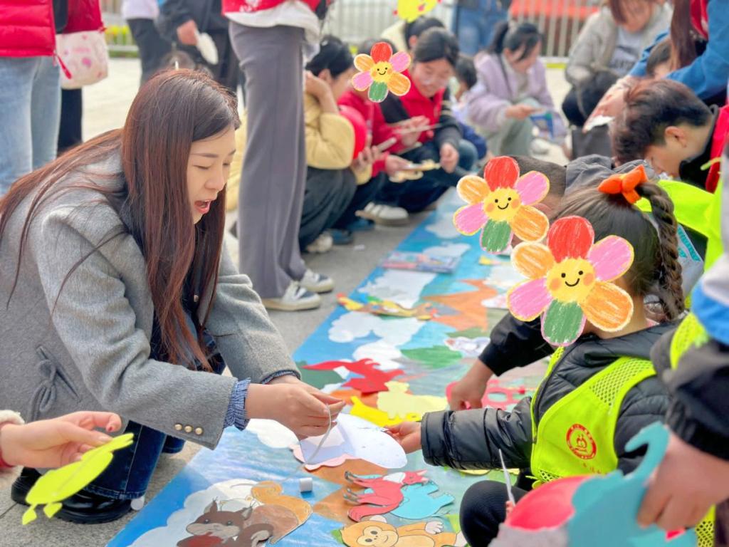 活动在轻松欢快的“星乐律动”唱跳互动中正式开启,志愿者们一对一贴心陪伴孤独症儿童,带领小朋友们跟随轻快的音乐拍手、律动、摇摆,在欢声笑语中拉近彼此距离,让孩子们慢慢放下拘谨。随后,志愿者与孩子们携手铺开百米长卷,围绕“春日森林里的快乐时光”主题开启集体创作,孩子们在志愿者的耐心引导下,自由挑选色彩、开心涂抹画面,制作动物卡片,用稚嫩的笔触勾勒出充满童趣与想象力的缤纷世界。志愿者温柔守护、悉心鼓励,让孩子们在绘画中认识世界、感受快乐、收获自信。