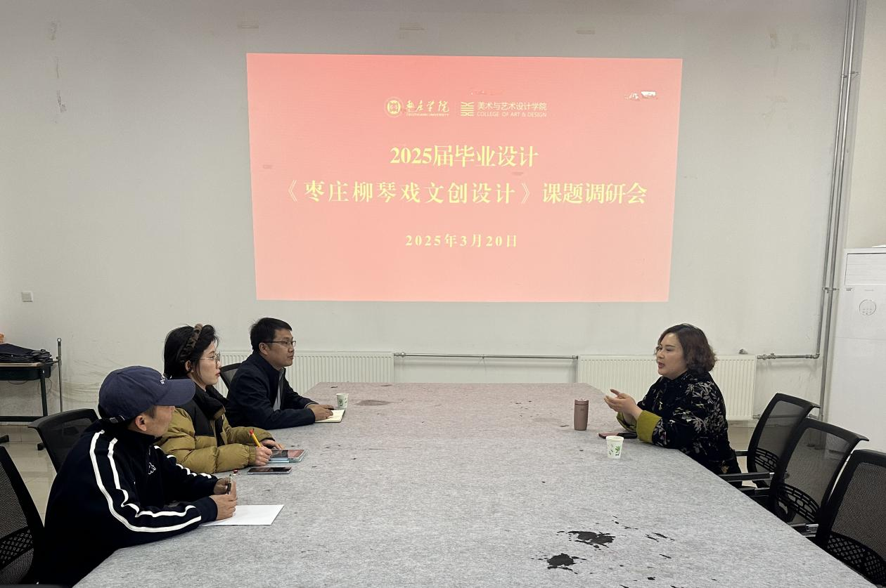 为推学院动2025届毕业设计工作走深走实,深化传统文化与现代设计的融合创新,推动非遗传承与实践教学的协同发展,3月20日上午,yl6809永利召开2025届视觉传达设计专业毕业设计《枣庄柳琴戏文创设计》课题调研会。会议特邀国家一级演员、原滕州市非物质文化遗产保护传承中心副主任、枣庄市第四批市级非物质文化遗产项目代表性传承人、永利集团yl6809新引进高层次人才马安林老师到院指导,学院副院长厉相帅、毕业设计指导教师汤文广及2025届视觉传达设计专业学生武文慧共同参与研讨。
