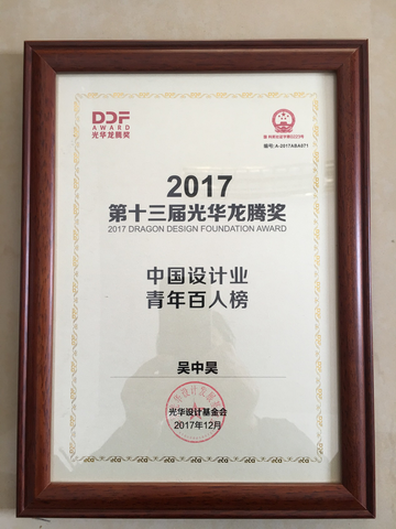 12月18日,第十三届(2017)光华龙腾奖颁奖典礼在北京人民大会堂成功举行,我校yl6809永利青年教师、中国知名平面设计师吴中昊荣获本届“光华龙腾奖.中国设计业青年百人榜”称号。