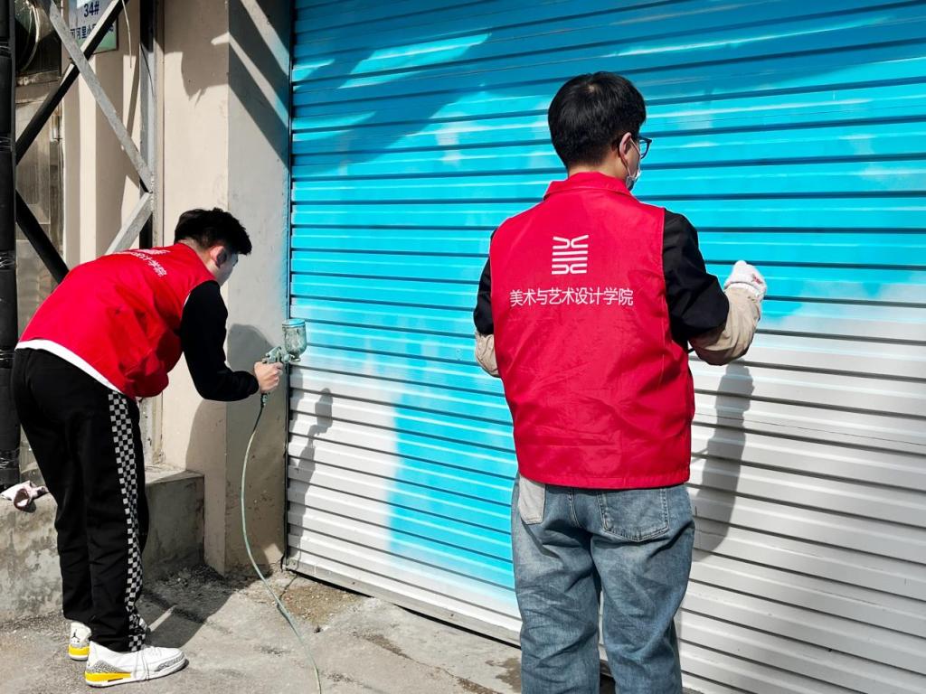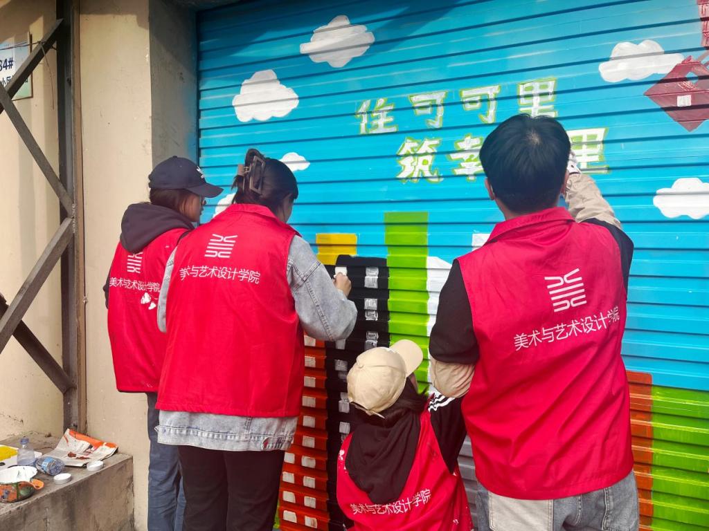志愿者们根据可可里花园老年活动中心的环境进行了墙面和车库门面的彩绘方案设计与绘制,重点打造“住可可里 筑幸福里”的主题思想。志愿者们充分发挥专业特长,进行线条定位、框架勾勒、颜色填充,经过他们的细致涂刷,原本暗淡的墙面有了鲜亮的色彩。既美观又会“说话”的文化墙成为社区一道独特的人文景观,看着墙面生动的内容与居民楼融合成景,过往居民都对此赞不绝口。