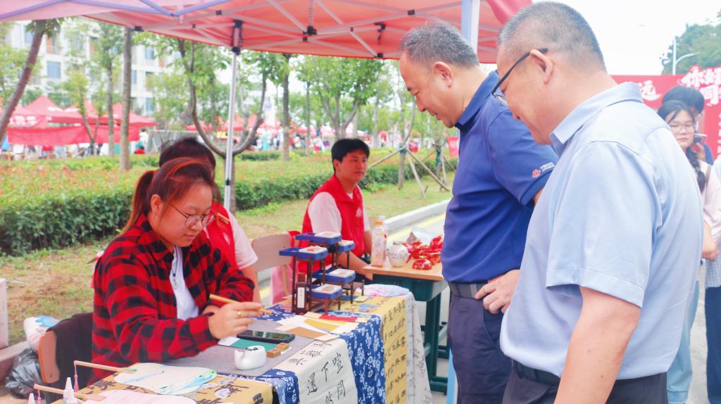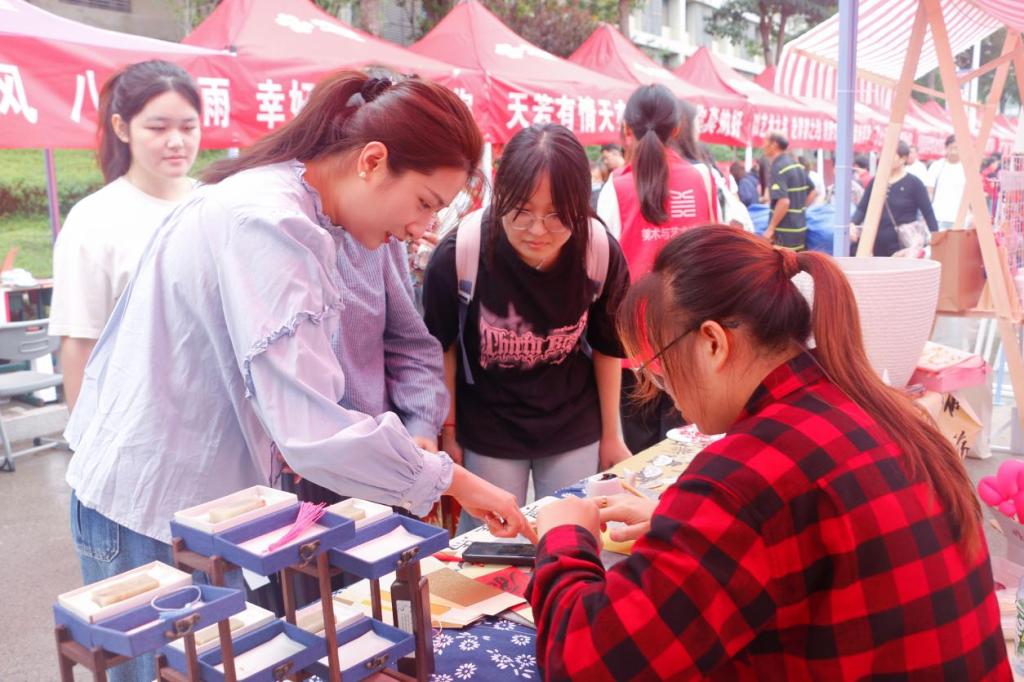 活动现场,yl6809永利以“美创+引航”双驱动打造暖心迎新体验。精心布局的迎新摊位上,设置党员先锋岗并开设“绿色通道”,师生党员全程引导新生完成报到流程,耐心解答入学政策、宿舍入住等疑问,为新生提供“一站式”便捷服务。由党员志愿者与学生干部组成的“行李搬运队”用肩扛手提的行动传递关怀,有效缓解了新生及家长携带行李奔波的压力。学院提前为新生准备了定制院徽、卡套、钥匙扣及贺卡等“开学礼”。现场还设有新生抽奖箱,为新生开学注入惊喜彩蛋。学生社团带来的特色展示更是成为现场亮点:民间手工艺协会不仅带来漆扇、香包、非遗缠花、布艺、陶艺等文创好物,还开放非遗漆扇制作体验,邀请新生亲手感受传统工艺;大地书画协会将对新生的祝福融入笔墨,现场创作书法作品;文萃印社则带来迎新专属设计的特色印章,供新生加盖,留下独家入学记忆。