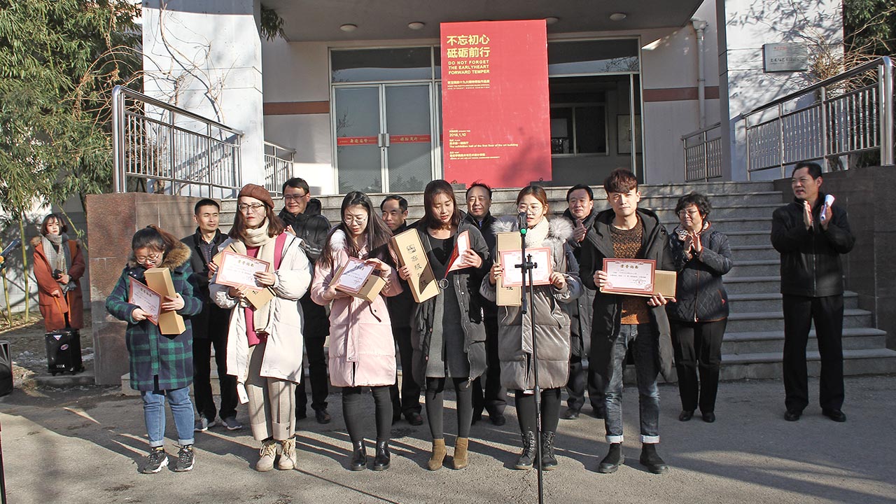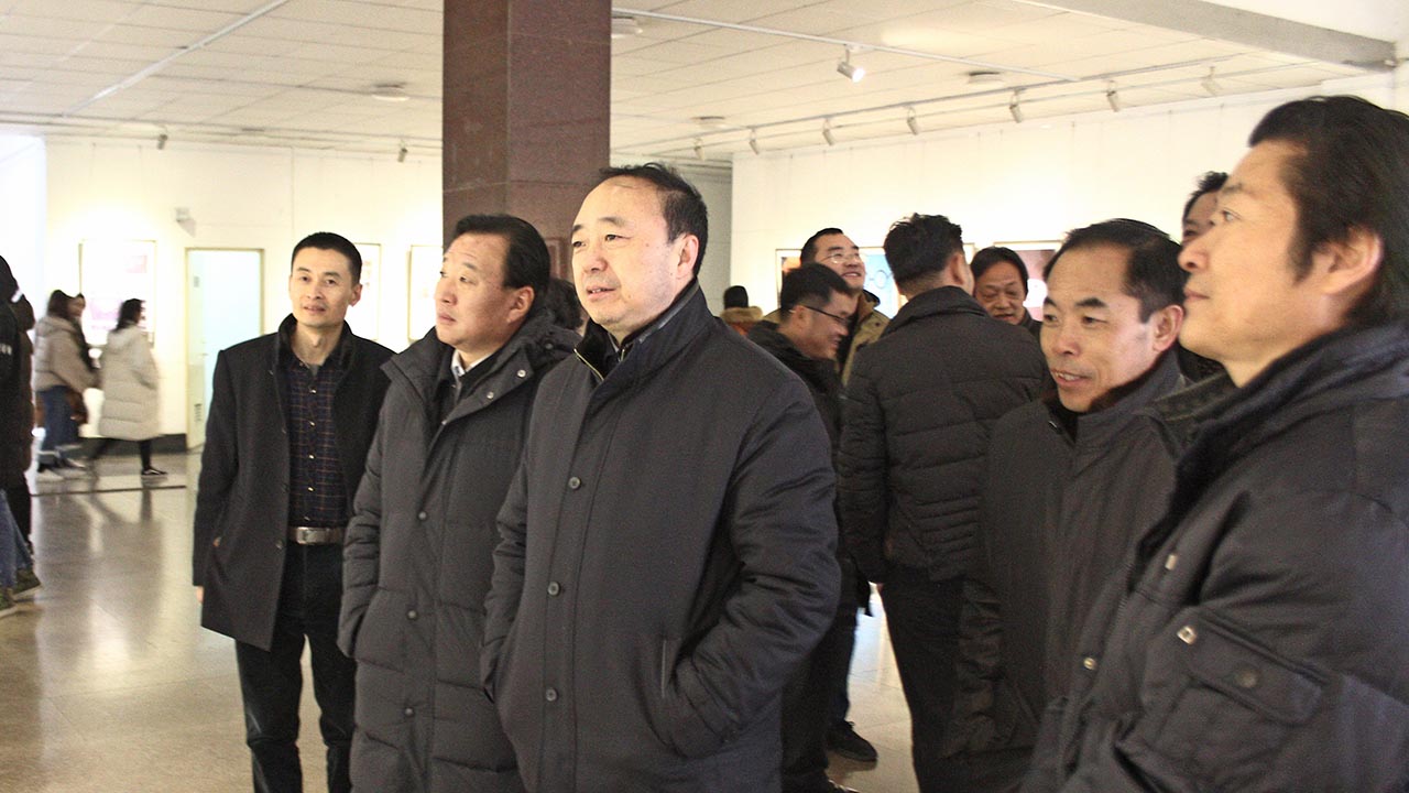 1月10日, “不忘初心,砥砺前行——yl6809永利学习党的十九大精神师生艺术创作展”在美术学院展厅开幕,校党委书记曹胜强、校长李东、副校长李进京、纪委书记韩素玲出席并参观展览。