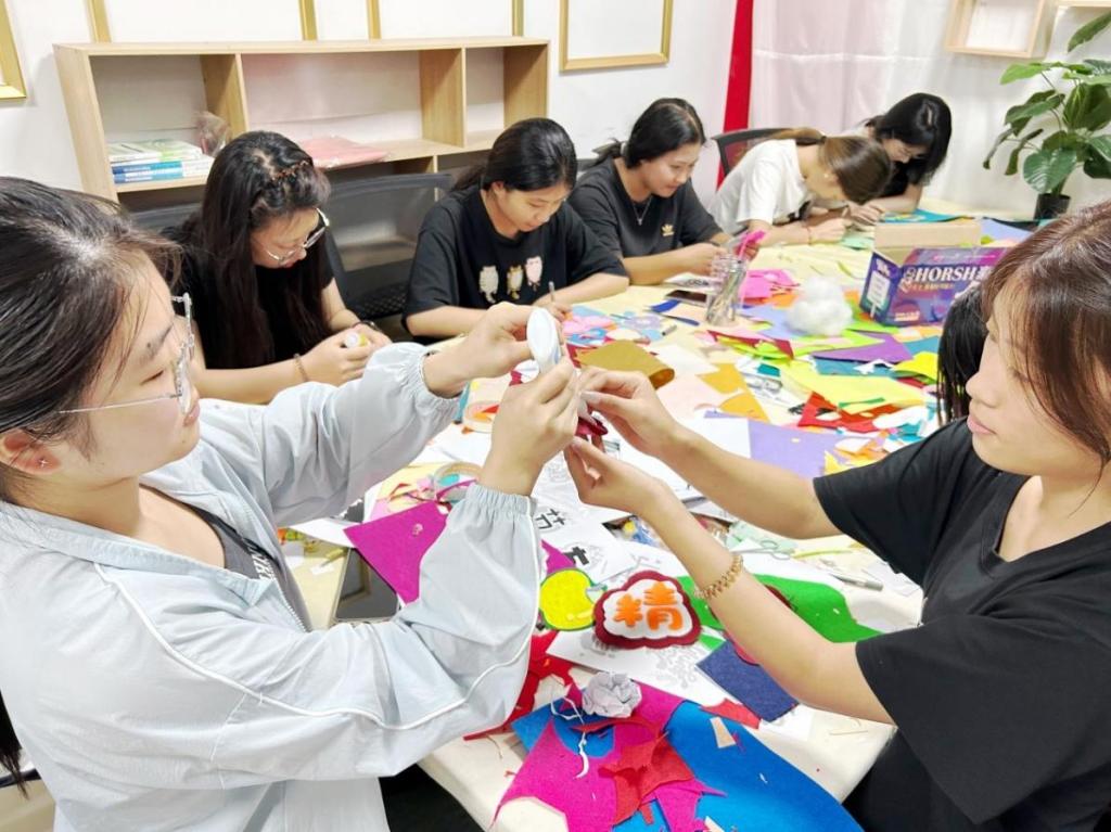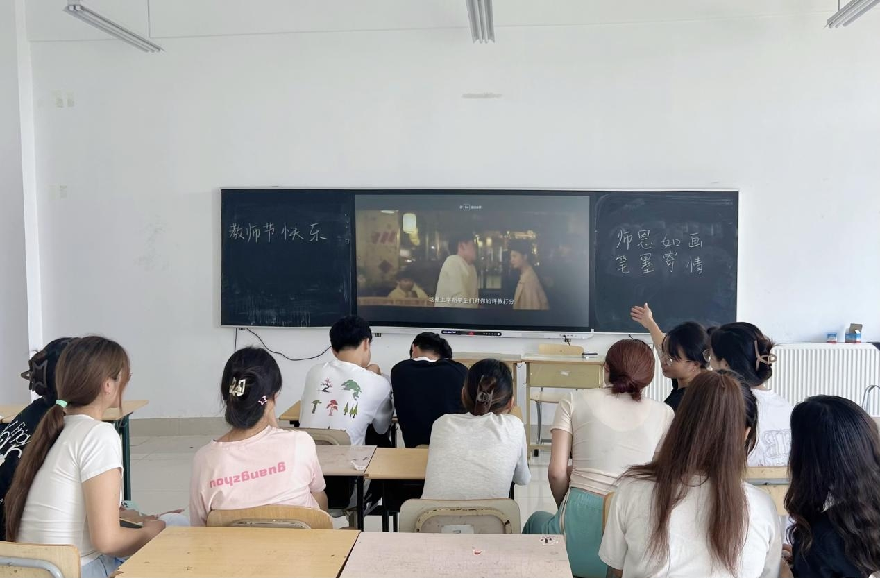 同学们将对老师的感恩之情化作一件件精美的手工艺品和一声声真挚的祝福。活动过程中,同学们以笔为媒,在表白墙上留下了对老师感激和祝福。还有同学们以手工制作精美贺卡和不织布挂件等礼物,传递了老师的感恩之情。此次活动还包括了光影致敬环节,通过放映《国家记忆》、《大先生》、《桃李无言》和《我要当老师》等影片,展现了教育工作者的奉献精神与教育热情,同学们深受触动,更加敬佩那些默默奉献在教育一线的老师们。