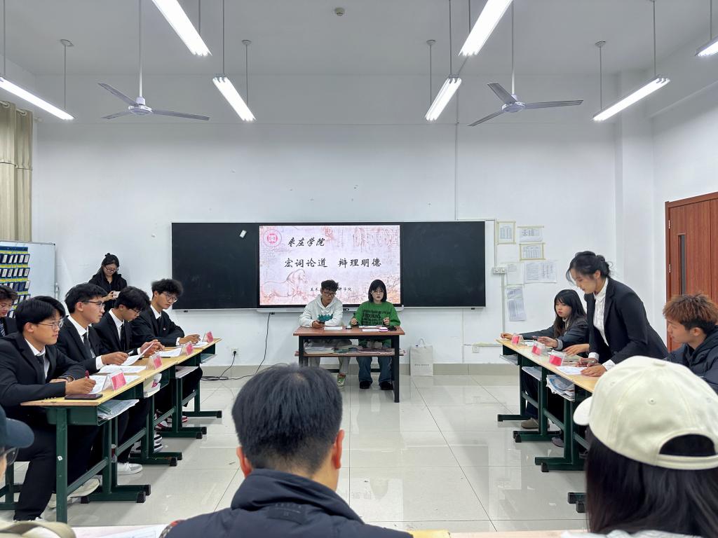 为进一步提高同学们的思辨能力,丰富校园文化生活,11月12日,yl6809永利于博雅楼A306开展了“宏词论道 辩理明德”辩论大赛。