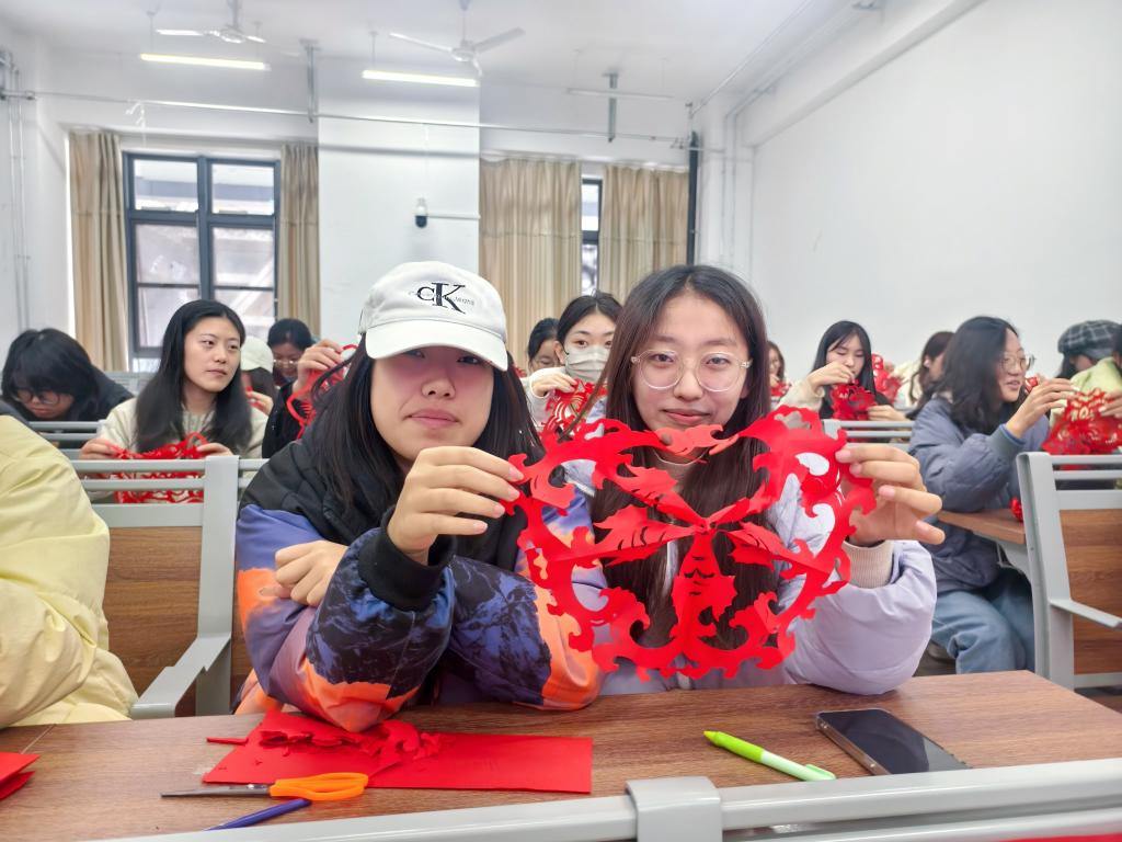 活动中,由民间手工艺协会负责人为同学们讲解了剪纸艺术的起源、发展以及在中国传统文化中的重要地位,并展示了协会成员们精心制作的56个民族主题剪纸作品。这些作品图案精巧、技艺精湛,赢得现场同学们的阵阵赞叹。在随后的实践环节中,社团成员带领同学们亲身体验了剪纸的创作过程,同学们进行了折、剪、刻等制作技巧的学习,耐心解答同学们在创作中的疑问。经过近3个小时的学习与实践,共完成了40余幅剪纸作品,每一幅作品都展示了大学生们的创意与对剪纸艺术的热情。