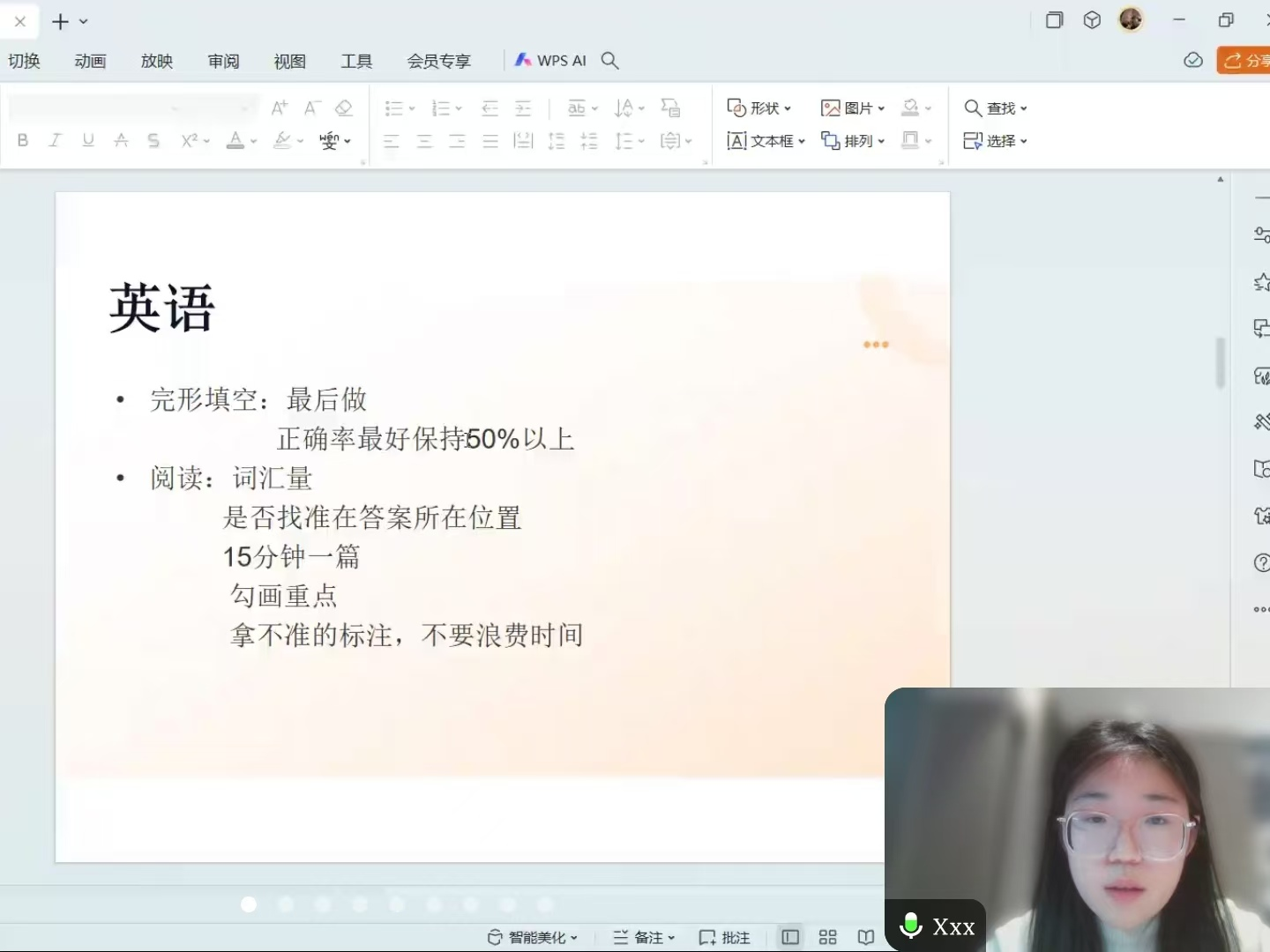 孙雅静结合自身备考经历,从英语学习、政治学习和专业理论学习三方面出发,围绕考研形势、时间管理、复习规划、心态调整等方面详细分享了备考经验,建议同学们可利用思维导图背诵法提高学习效率。在备考过程中,要注重对知识点的深入理解和掌握,同时加强模拟练习,建议同学们要保证效率,不要焦虑,保持积极的心态。分享尾声,同学们踊跃提问,针对大家提出的问题,学姐进行了详细的解答,并给予了同学们诚恳的建议。