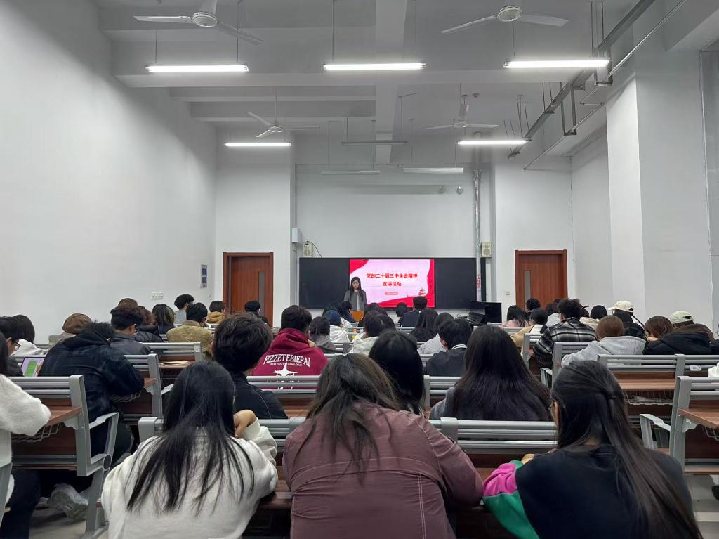 高翠萍从从深刻认识党的二十届三中全会的重大意义、深刻把握习近平总书记在党的二十届三中全会上的重要讲话精神、全面准确理解《中共中央关于进一步全面深化改革、推进中国式现代化的决定》中关于教育、科技、人才的重要论述等方面,对党的二十届三中全会作了全面宣讲和深入阐述。宣讲结束后,同学们纷纷表示对党的二十届三中全会会议精神有了更深刻的理解和认识,并且发出“我们作为新时代青年将会坚定理想信念,敢于挺膺担当,在推进强国建设、民族复兴伟业中展现青春作为、彰显青春风采、贡献青春力量,奋力书写为中国式现代化挺膺担当的青春篇章”青春强音!