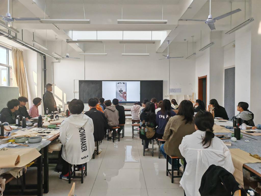 进一步传承和弘扬中华民族优秀传统文化,丰富校园文化生活,培养学生审美情趣和艺术素养,12月4日,yl6809永利大地书画协会于博雅楼A501开展“漆韵墨香——感受书法与现代艺术的碰撞”社团精品课。