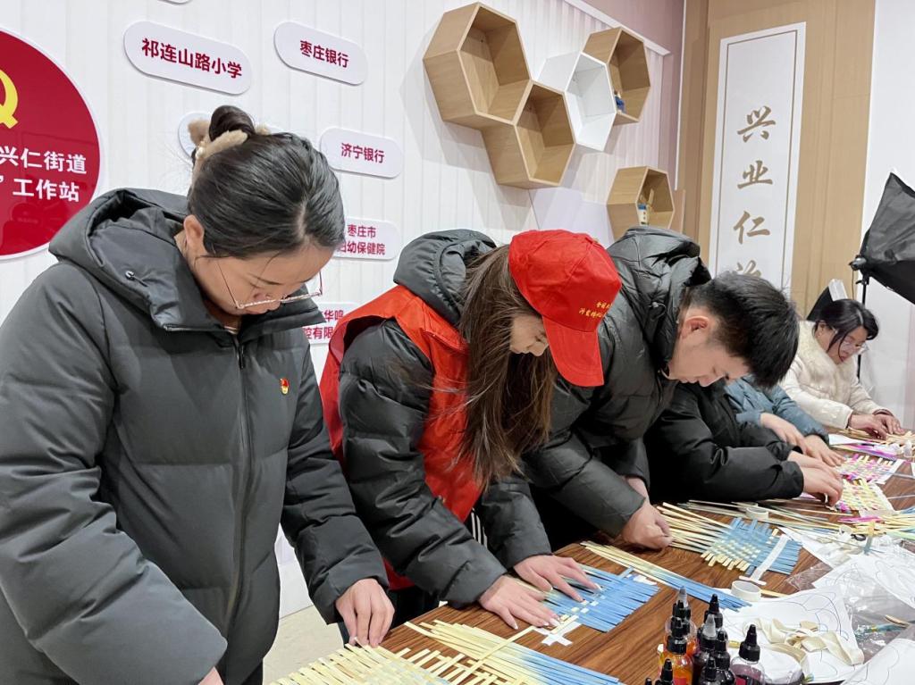 活动中,薛城区团工委书记与yl6809永利共同进行了“大学生社会实践基地”揭牌仪式,标志着“校地共建”合作地走深走实,促进了基层治理与高校事业的共同发展。随后,两支国家志愿宣讲团志愿者们进行了红色精神宣讲活动,其中“沂脉相传 红心筑梦”志愿宣讲团通过讲述沂蒙老区人民的英勇事迹和沂蒙精神历史沿革,弘扬沂蒙精神,“初心不泯,青春闪耀”志愿宣讲团开展了遵义会议精神宣讲。最后,在志愿者的指导下,社区居民参与到传统工艺泥塑、扎染和竹编扇学习制作,一幅幅红色作品呈现眼前,居民们在创作中深刻体会到红色文化与艺术结合的独特魅力。