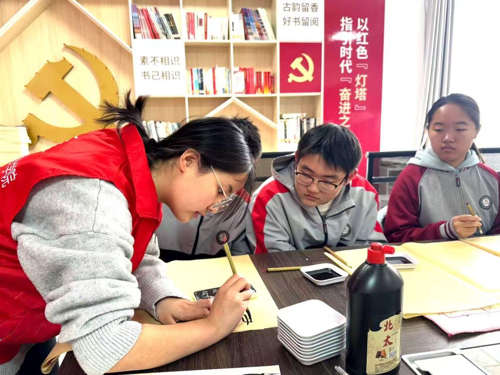 此次活动共有30名社区青少年参加。活动以雷锋精神为题,以书法为介,通过书法创作和写作的方式去传承雷锋精神。此次活动分为书法作品展示、互动体验和教学指导三个环节。首先,志愿者们精选了“雷锋主题”书法佳作,为青少年们讲解了书法文化和书法书写知识。随后,志愿者指导青少年们进行了雷锋精神主题的书法写作。志愿者们从最基础的握笔姿势、坐姿讲起,耐心地向青少年们讲解笔画结构的要点,包括起笔、行笔、收笔的技巧,纠正大家的姿势和笔法。最后,在志愿者的鼓励与帮助下,青少年们逐渐掌握了书写方法,书写出“向雷锋同志学习”“雷锋精神永放光芒”等30件书法作品。