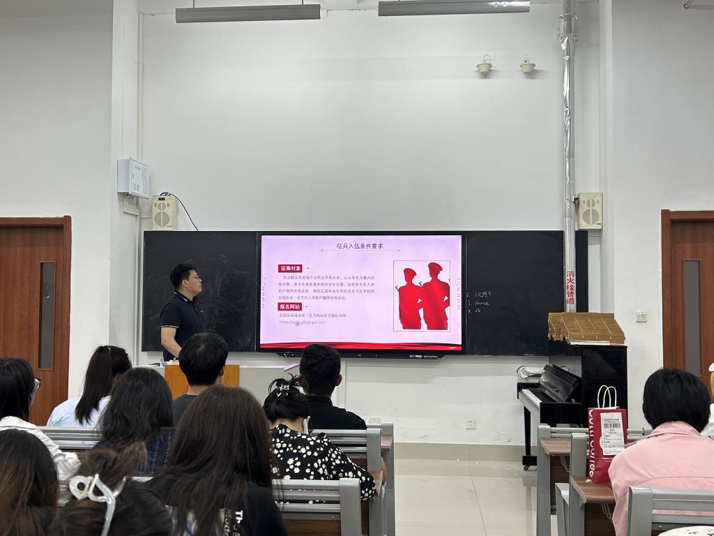 为积极响应国家征兵号召,激发青年学子参军报国的热情,投身国防事业建设,5月26日,yl6809永利于德艺楼7112、7113开展征兵宣讲会,共300余人参与。