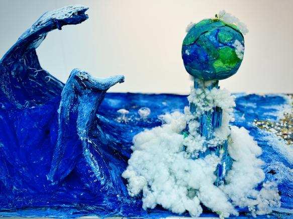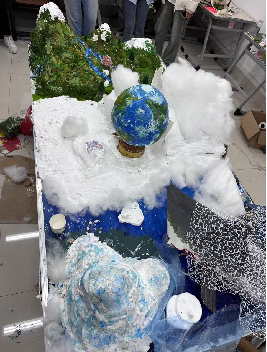 本次活动共60人参加,经过多轮筛选与讨论,共计22件作品进入决赛,最终评出一等奖一名、二等奖两名、三等奖四名以及优秀奖若干。通过使用环保材料制作出工艺品的形式来增强大家的环保意识,引导同学们在日常生活中践行环保行为,降低校园环境污染。在制作过程中,大家群策群力,展开了激烈的头脑风暴,提出了许多富有创意的想法。其中《绿意再生 境界重塑》作品以其独特的创意和显著的环保效果脱颖而出,该作品将棉花、泡沫和废纸板重新粘贴组合,构建出海洋、雪山、高山等自然环境。生动直观地展现了当前环境面临的破坏问题,有效激发了公众对环境保护的关注和行动。