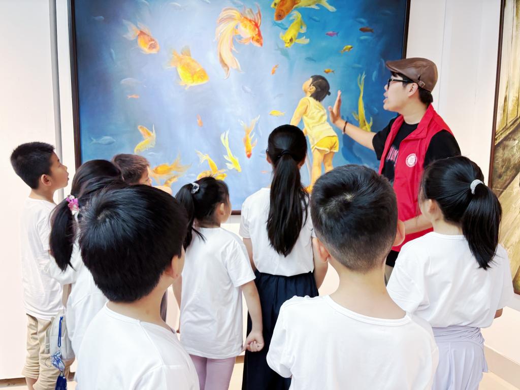 活动以“走进大学”为开篇,在志愿者的引导下孩子和家长们步入永利集团yl6809新校区,打卡音乐厅、文萃湖畔、莲花餐厅等地点,感受大学校园的人文底蕴与自然之美。随后,美术馆内的“毕业作品展”成为美育课堂的生动教材,孩子们驻足于一幅幅画作前,聆听志愿者讲述艺术家的创作故事,让审美感知在沉浸式观展中提升。在美术教室里开展非遗创作,志愿者们指导孩子们编织竹丝,制作出有动物纹样的艺术作品;在陶艺工坊,家长与孩子合力揉捏陶土,旋转的轮盘上,创意花盆、卡通摆件等作品逐渐成型,欢笑声中洋溢着亲子协作的温暖。