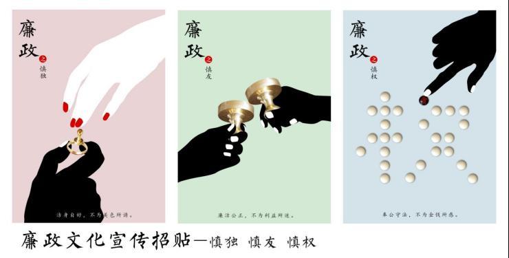 平面招贴《慎独慎友慎权》,第六届全国高校廉政文化作品大赛,山东赛区艺术设计类二等奖,中共山东省委高校工委,2017.10,1/1。
